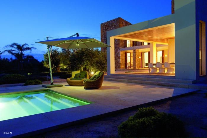 Die schlichte Linie ohne Volants betont den modernen Charakter von Sombrano S+ easy. Auch über den Tischen lässt er sich bequem und einfach öffnen. Dank dem nach hinten geneigten Mast zieht sich der geschlossene Sombrano S+ easy diskret aus dem Sitzbereich zurück. Der Schirmbezug ist auswechselbar und selbstspannend dank den flexiblen Strebenenden.